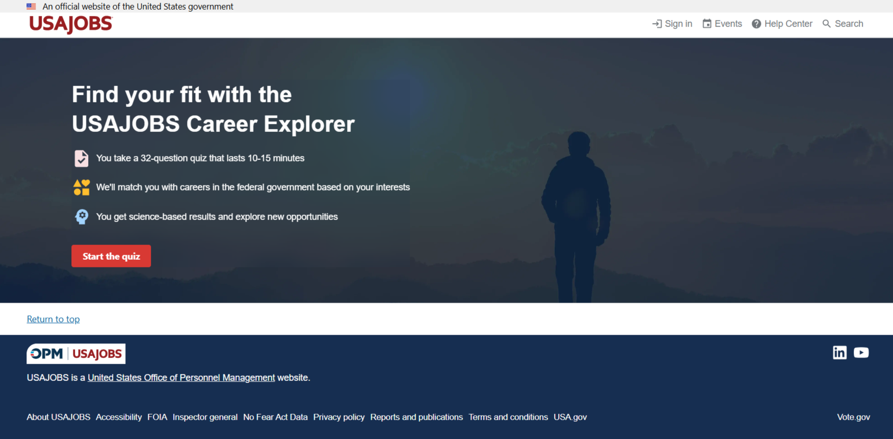- Career exploration – Browse federal careers by interest, agency, or job family