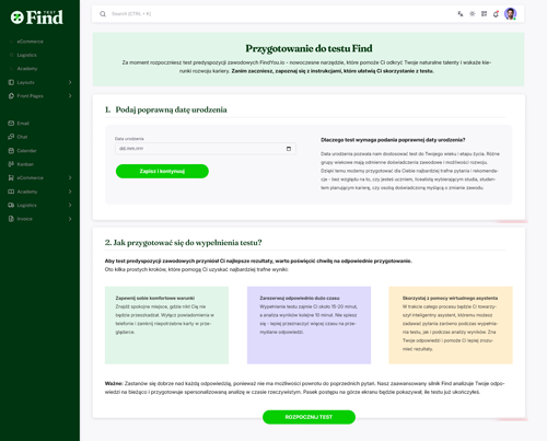 Whether you're just starting to think about your future or planning a career transformation - our professional competency test will adapt to your situation. FindYou.io is a solution that understands that each of us is at a different stage of our career and needs a personalized approach to discovering career aptitudes.